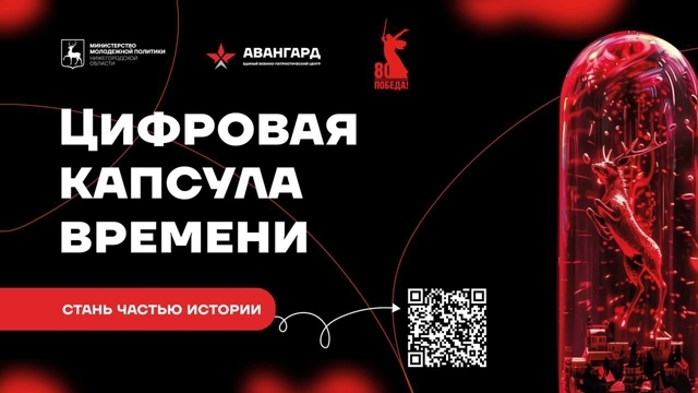 Запускаем «ЦИФРОВУЮ КАПСУЛУ ВРЕМЕНИ». Это уникальный проект Центра «Авангард» Нижегородской области, который позволит сохранить воспоминания, мысли и чувства на определённый момент времени для будущих поколений. Все видеоматериалы будут записаны на цифровой носитель и переданы в музеи Нижегородской области для хранения и вскрытия в 2045 году — к 100-летию Победы в Великой Отечественной войне.Принять участие легко — нужно записать короткий видеоролик на тему событий тех лет.Просто представь: Этот проект позволит сохранить информацию и передать её через двадцать лет. Капсула времени — это виртуальное хранилище фотографий, видео и писем, отражающих культуру, события и личные истории. Ты сможешь не только загружать свои материалы, но и добавлять комментарии, делиться воспоминаниями.