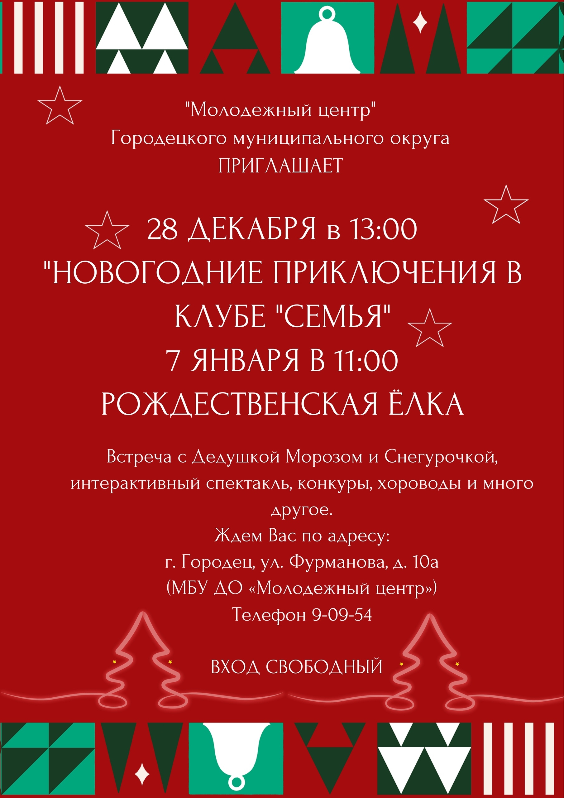 Приглашаем всех окунуться в мир новогодних чудес вместе с Клубом "СемьЯ" и Молодежным центром Городецкого округа !