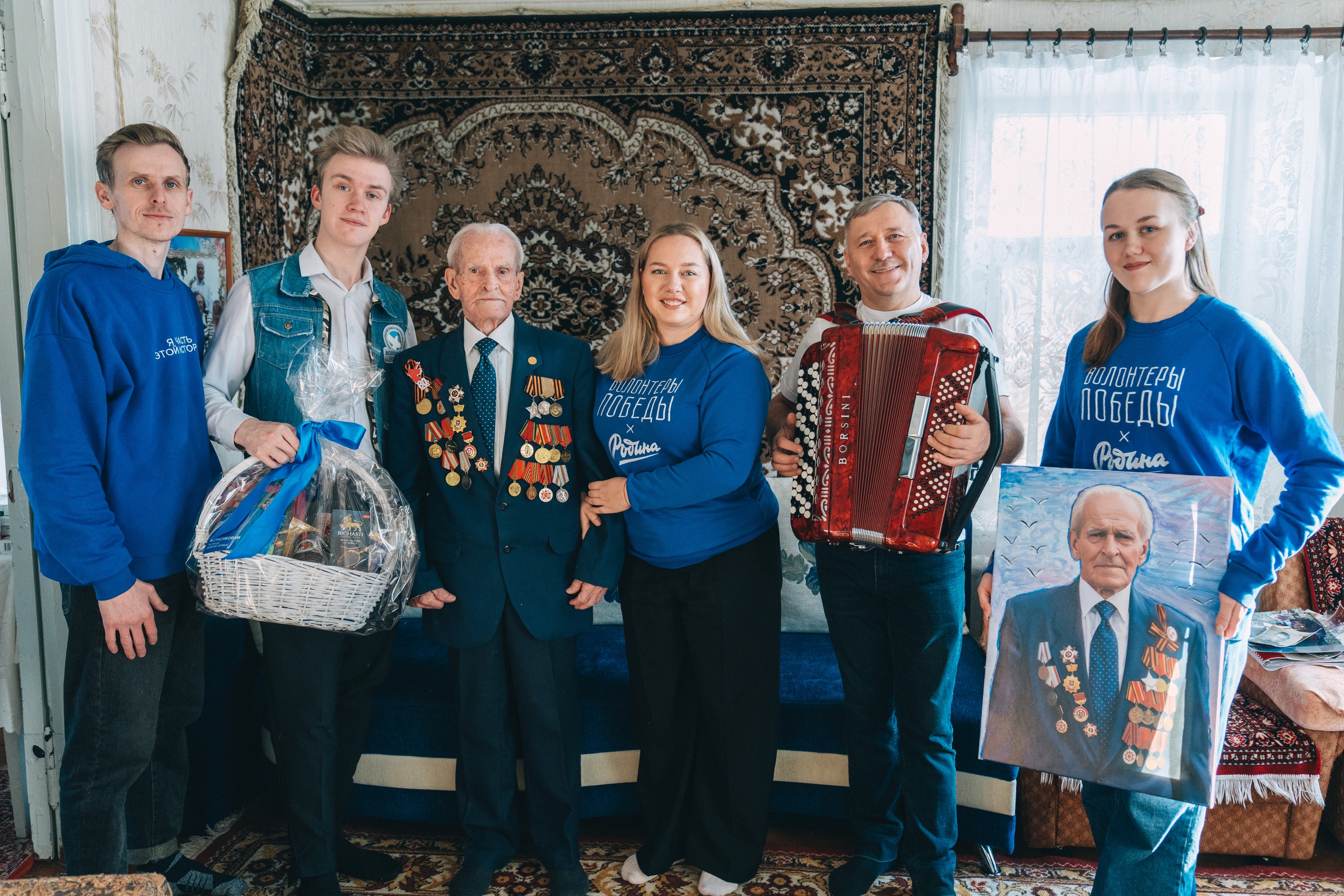 Сегодня ветерана навестили активисты движения «Волонтёры Победы», чтобы передать поздравления и слова искренней благодарности.