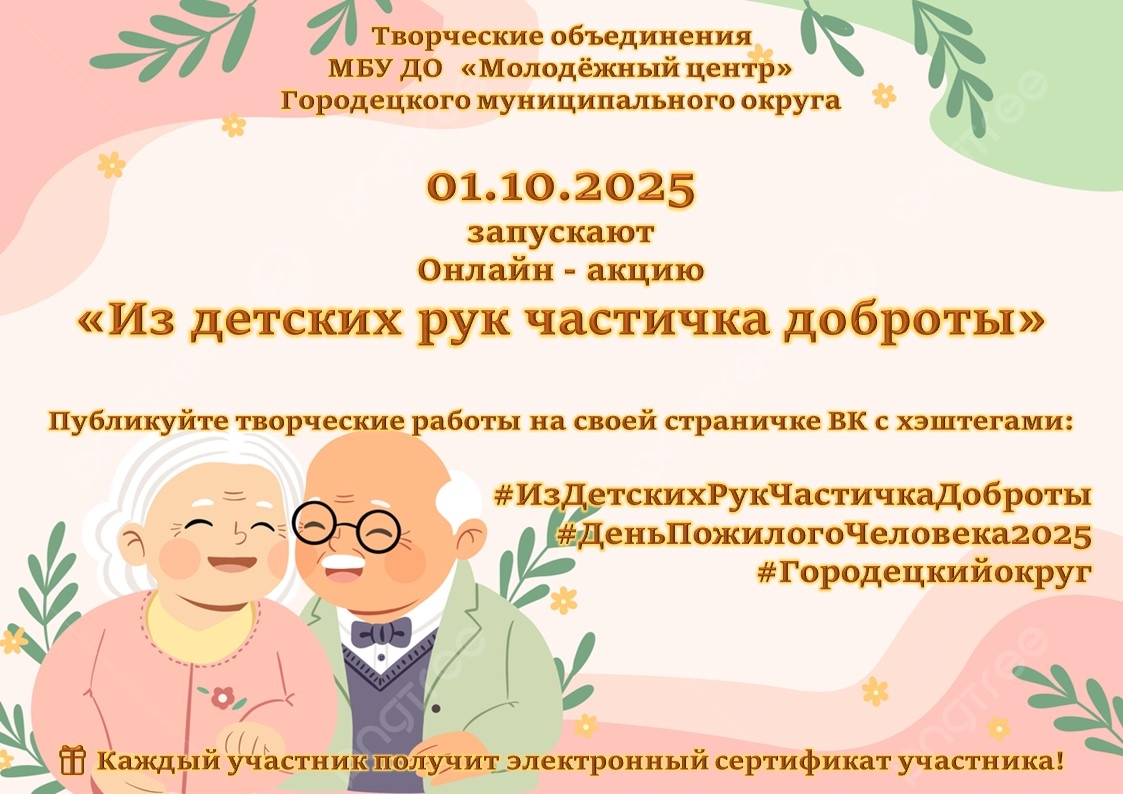 Этот день — напоминание о тепле, заботе и уважении к нашему старшему поколению: бабушкам, дедушкам, соседям, … Тем, кто дарит нам мудрость, любовь и поддержку. МБУ ДО «Молодёжный центр» Городецкого муниципального округа приглашает всех — детей, подростков и взрослых — принять участие в доброй онлайн-акции: