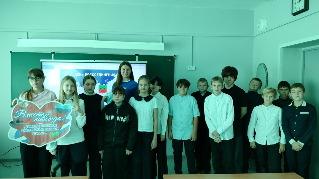29 сентября в МБОУ "Средняя школа №19 с УИОП" г.Заволжье прошел информационный час, посвящённый важной исторической дате – воссоединению Донецкой и Луганской Народных Республик с Российской Федерацией. Этот день — символ единения, дружбы и общей судьбы. Ребята узнали об историческом значении этого события, познакомились с судьбами жителей Донбасса, обсудили, что значит быть единым народом, разделяющим общие ценности, культуру и будущее. Мы верим: пока мы вместе — мы сила!