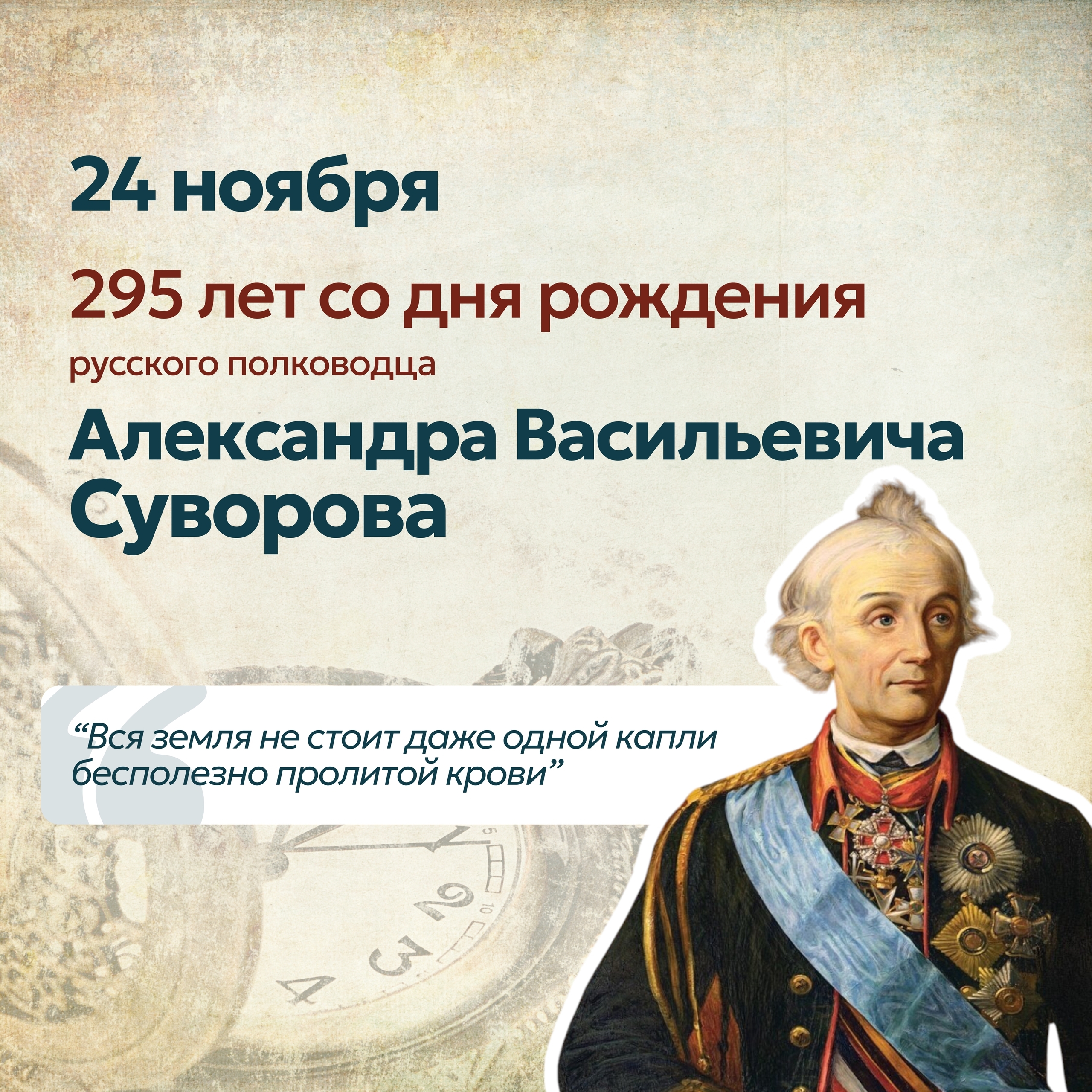 «Мы — русские, и потому победим» Ровно 295 лет назад родился гений военного искусства, чей талант не знает равных и по совместительству автор этой цитаты — Александр Васильевич Суворов. Генералиссимус был не просто талантливым стратегом. Он был настоящим человеком, который жил жизнью своих солдат, делил с ними все тяготы сражений, проявлял заботу и справедливость. Его методы изучаются и по сей день, а принципы остаются образцом для подражания.