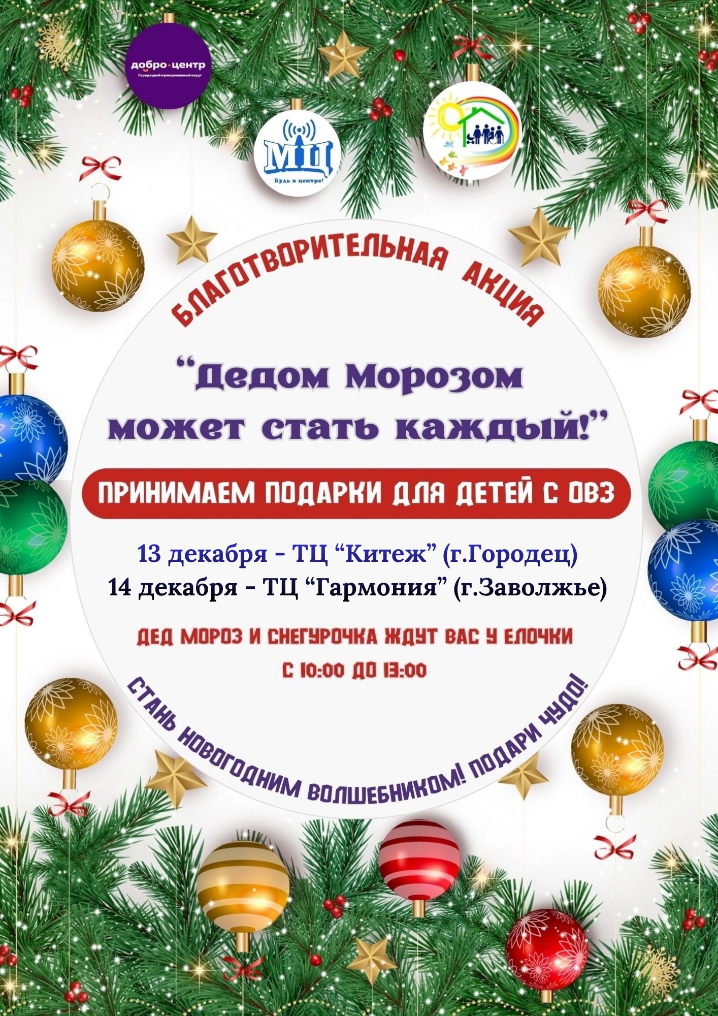 В День волонтёра - 5 декабря - Добро.Центр Городецкого муниципального округа запускает традиционную новогоднюю акцию для самых добрых и неравнодушных!